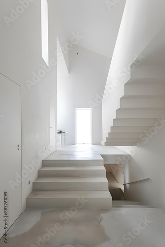 staircase, interior, design, modern, minimalism, white, architecture, house, home, stair, hallway, minimalist, contemporary, style, building, concrete, flooring, light, space, room, simple, clean, line, geometric, abstract, art, decor, decorating