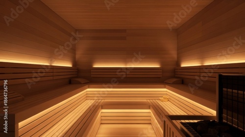 Modern Wooden Sauna Interior With Soft Lighting and Wooden Benches for Relaxation and Warmth