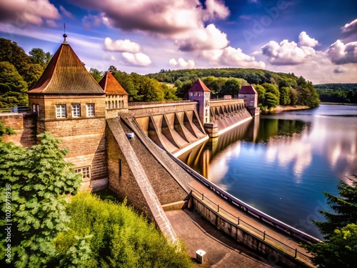 north rhine-westphalia, german, engineering, landscape, nature, calmness, travel, tour tourism, historical site, scenic view, infrastructure, reservoir, blue skies, greenery, river, picturesque, historical monument, scenic beauty, hiking, adventure, natural beauty, ecotourism, environmental conservation, travel destination