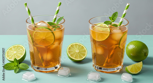 tea, drink, glasses, lemon, ice, beverage, cocktail, cold, fruit, mint, iced, fresh, citrous, isolated, orange, refreshment, alcohol, summer, liquid, juice, slice, iced tea, white, cool, lime
