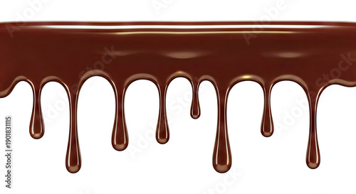 Molten Dark Chocolate Drips on White Background