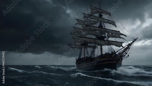 monochrome, ship, storm, stormy, ocean, landscape, wave, sailing, sea, rain, cloud, adventure, danger, lightning, dramatic, oceanic, wave, seascape, journey, view, wallpaper, background, ai, artificial intelligence, digital artwork, weather, bad weather, thunderstorm, pirate, travel, nautical, chaos
