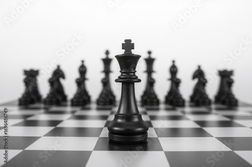Monochrome chess queen positioned centrally on the board, symbolizing strategy and mastery