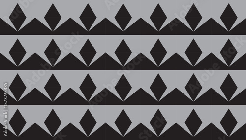 Monochrome tribal-inspired pattern with repeating diamond shapes in horizontal stripes