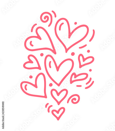 Monoline cute pink different size hearts. Vector Valentines Day Hand Drawn icon. Holiday sketch doodle Design element valentine. love decor for web, wedding and print. Isolated illustration