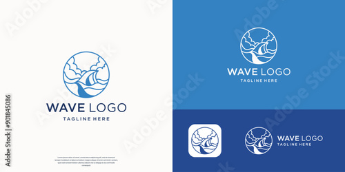 monoline ocean wave line logo designs template, Sea ocean summer vacation. Pictogram water streams.