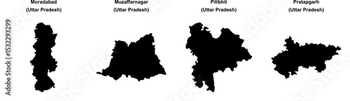 Moradabad, Muzaffarnagar, Pilibhit, Pratapgarh outline maps