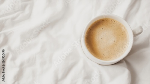 Morning coffee on white bedsheets