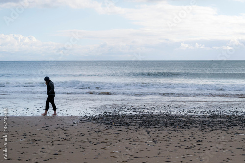 beach, sea, sand, ocean, water, coast, walking, sunset, sky, summer, woman, wave, walk, surf, sun, silhouette, running, vacation, blue, shore, nature, alone, people