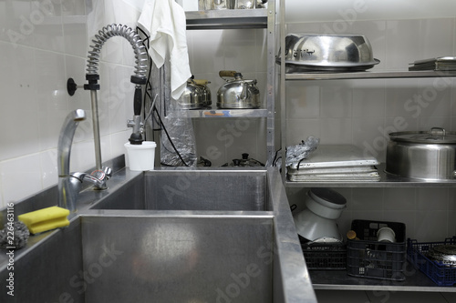kitchen, sink, cafes, professional, eatery, steel, wet, cutlery, dishwasher, clean, tap, industrial, metal, work, equipment, cooking, metallic, indoor, place, working, preparation, domestic, culinary, concept, chrome, housework, housekeeping