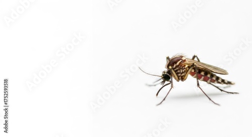 mosquito, insect, closeup, macro, arthropod, wing, leg, antennae, compound, eye, blood, sucking, parasite, bite, disease, vector, pest, buzzing, nuisance, malaria, dengue, fever, yellow, virus, infection, tropical, summer, health, danger, wildlife, creature, bug, animal, nature, biology, medicals, science, isolated, white, background, microscopic, tiny, striped, abdomen, black, brown, threatening, dangerous