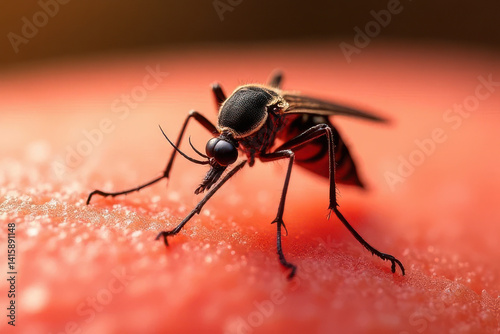 Mosquito on Sunburned Skin: Realistic Inflammation and Detailed Anatomy Macro Illustration