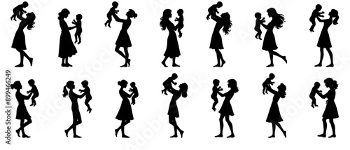 mother, holding, her, baby, silhouette, black, filled, vector, illustration, icon, day, celebration, playing, hug, set, art, outline, graphic, drawing, design, continuous, happy, love, woman, contour, people, symbol, children, girl, care, family, isolated, beautiful, young, happiness, boy, son, silhouette, lady, pose