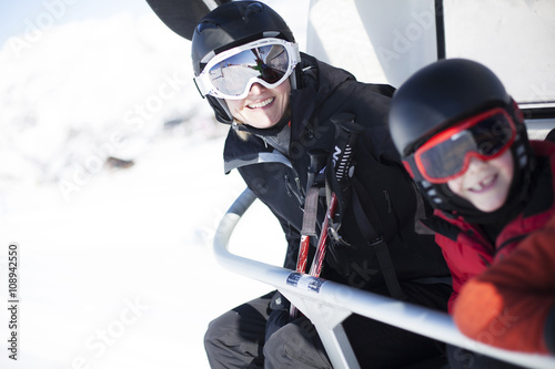 Mother with son sitting in ski lift