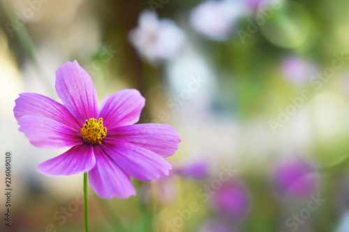 Mothers Day card with cosmos flower in the garden and copy space