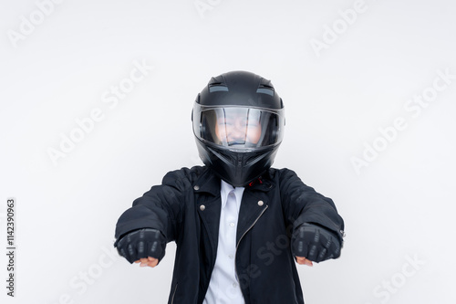 motorcycle, rider, helmet, delivery, motorbike, driver, asian, female, woman, transport, safety, motion, professional, riding, white background, courier, isolation, posture, glove, black jacket, motorcycling, sharpened, driving, urban, lifestyle, commuter, job, filipina, filipino, thai, indonesian, malaysian, vietnamese, japanese, korean, missy, simulated