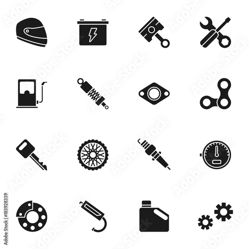 Motorcycle Parts Vector Icons. Details and attributes for riding a motorcycle.