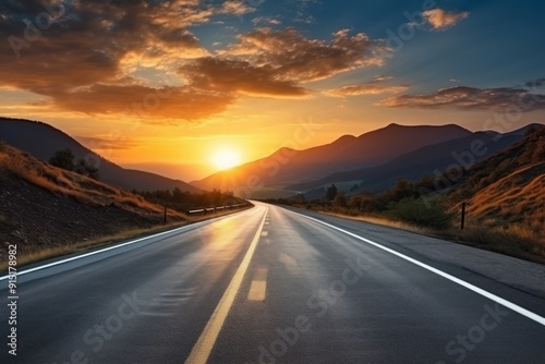 mountain, road, nature, sky, sunrise, background, outdoors, highway, minimal, scenery, sunset, cloud, light, car, sun, landscape, travel, downloadable, sunlight, asphalt, horizon, street, yellow, photo, land, signs, expressway, symbol, curve, image, speed, infrastructure, illuminated, calmness, cloudscape, copy space, panoramic, straight, twilight, absence, idylli, journey, marking, natural