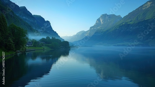 lake, mountain, fog, morning, early, sunrise, water, landscape, nature, scenery, view, shore, tree, green, blue, sky, calm, tranquil, peaceful, serene, beautiful, scenic, picturesque, travel, destination, natural, wilderness, environment, conservation, eco, ecological, summer, spring, season, vacation, adventure, holiday, europa