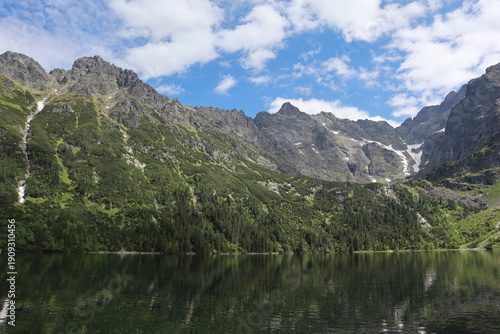 bergsee, forest, rocky mountain, nature, wilderness, calm water, blue skies, cloud, summer, travel destination, national park, no people, environment