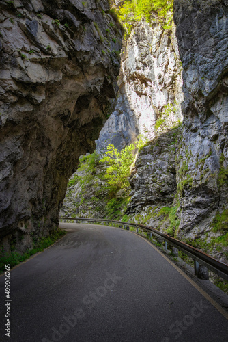 mountain road in the gorge of the mountains near the city in Italy San Pelegrino