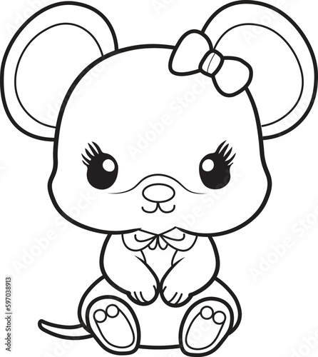 Mouse cartoon. Black and white lines. Coloring page for kids. Activity Book.