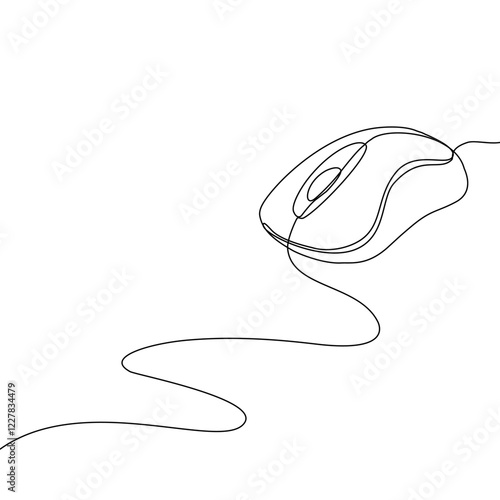 Mouse computer one continuous single line art drawing. Minimal art style. Computer mouse equipment continuous line art illustration.