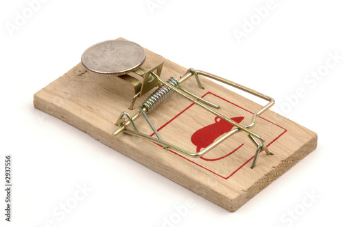 mousetrap, trap, coin, quarter, thieving, trust, concept, security, greed, money, currency, catch, risk, trick, lure, temptation, bait, entrap