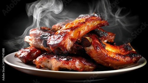 Mouthwatering Barbecue Ribs on a Plate with Smoky Aroma and Glazed Texture Ready to Delight Food Lovers and Grill Enthusiasts in Culinary Presentation