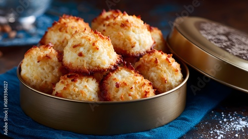 Mouthwatering Coconut Macaroons: Sweet Treats & Holiday Snacks with Fluffy Texture and Crunchy Exterior - Delicious Dessert for Festive Indulgence & Dessert Lovers in Rustic Atmosphere