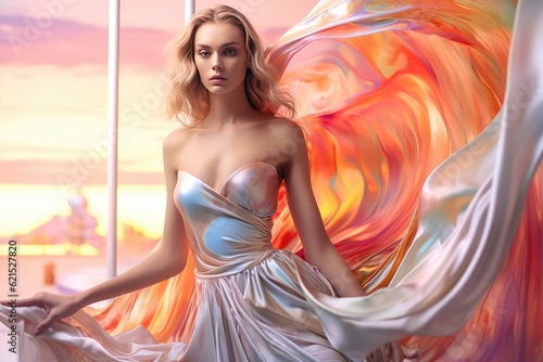 Multi-colored dress made of liquid paints. Generative AI