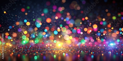 Multicolored particles in the air with bokeh light effects on a dark background, particles, air, sparkles