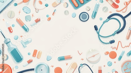 Multiple borders with medical themes including stethoscopes, pills, and health symbols on a single page