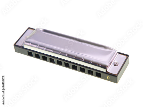 Mundharmonika freigestellt auf weißem Hintergrund