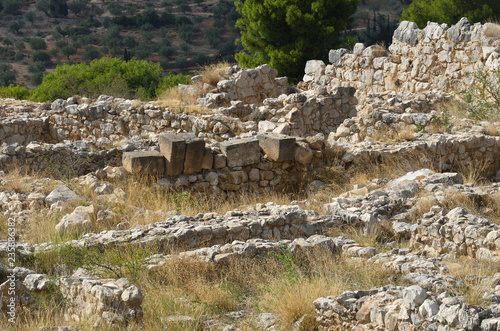 scenery, greece, greek, archaeologic, mountain, countryside, field, rural, stone, ruin, tree, masonry, landmark, civilisation, fortress, old, wall, artifact, antiquity, architecture, outdoors, ancient, olive, olive grove, vinery, agricultural, typical, travel, landscape