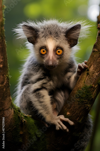 madagascar, lemur, wild, nocturnal, animal, tree, forest, foliage, endangered, wildlife, tree branch, creature, rare, mammal, primate, nature, native, ethology, zoology, breeding, habitat, conservation, rainforest, biodiversity, safari, outdoors, ecology, exotic, exploration, photogenic, portrait, travel, adventure, yellow eyes, hunting, chow, species, unique, curious, leafy, observing
