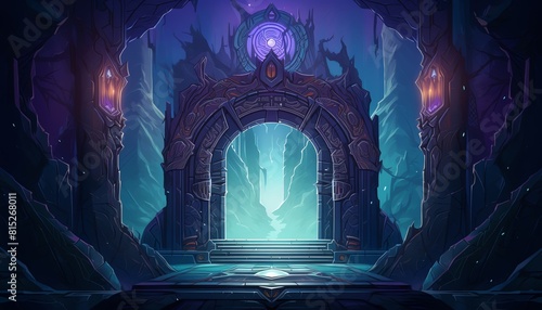 mystic, portal, flat, design, front, view, adventure, theme, draw, fiction, artwork, tetradic, magic, legend, creature, crayons, whimsy, colours, enchant, concept, high-coloured, graphic, gateway