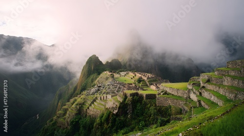 Mystical Machu Picchu Ancient Citadel Rises Through Misty Mountain Peaks of Peru