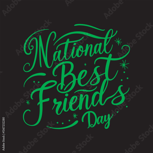 National Best Friends Day Calligraphy Vector Design,Best Friends Day Handwritten Typography Illustration, Elegant Script for National Best Friends Day Celebration,Hand Lettered National Best Friends