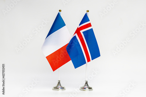 National flags of France and Iceland on a light background.
