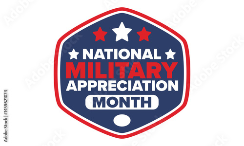 National Military Appreciation Month in May. Annual Armed Forces Celebration Month in United States. Poster, card, banner and background. Vector illustration