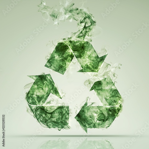 Nature Meets Technology: Green Smoke Recycling Symbol on Ether、自然と技術の出会い:エーテルにある緑の煙リサイクルシンボル.Generative AI