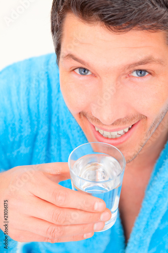 man, health, healthy, smile, friendly, attractive, bathrobe, morning, lifestyle, water, blue, relax, laid back, relaxation, liquid, fresh, drink, cold, clear, people, natural, care, vacation, cosmetic, wellness, health spa, recreation, healthy living, male, pretty, beauty, cultivate
