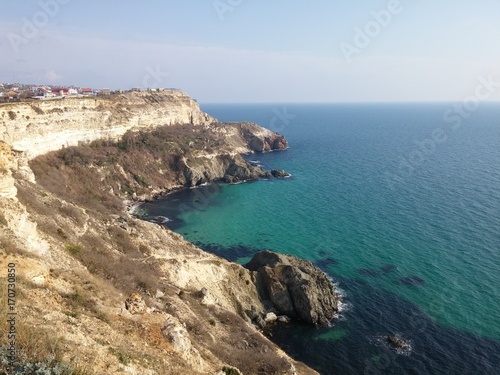 sea, beach, coast, water, ocean, landscape, blue, nature, sky, cliff, coastline, greece, island, summer, rock, travel, mediterranean, bay, rock, sand, vacation, shore, view, seascape, greek