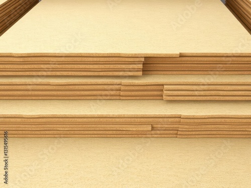 Neatly stacked oriented strand board sheets, ready for use, material, paneling, brown texture