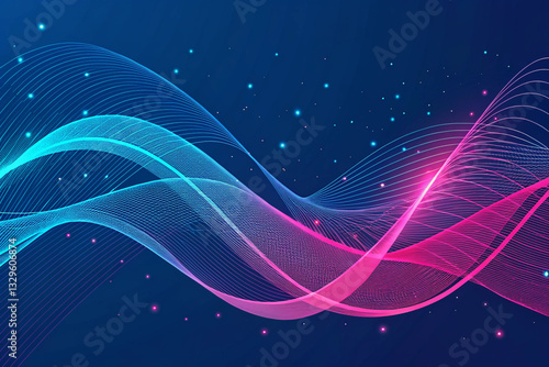 Neon blue and pink digital waves flow seamlessly, creating a futuristic and tech-inspired abstract background with dynamic energy