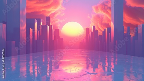 city, sunset, neon, futuristic, urban, city landscape, sky, cloud, pink, purple, blue, water, modern, architecture, building, horizon, evening, dusk, light, colours, vibrant, abstract, digital artwork, illustration, design, graphic, background, wallpaper