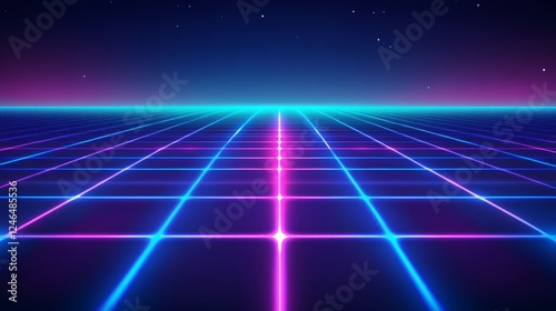 Neon Grid Retro Futuristic Background, 80s Style, Digital Art, Vaporwave, Cyber Surface