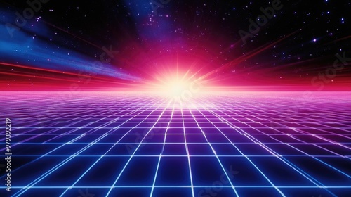 neon, grid, geometric, shape, glowing, science fiction, retro, futuristic, deep space, 1980s, vibrant, technology, landscape, design, virtual, space, aesthetic, grid
