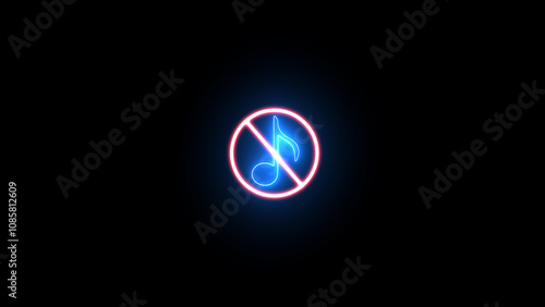 Neon line no music icon. glowing forbidden noise icon. Prohibited loud icon. no sound sign. Warning, caution, attention, restriction, danger flat sign design.